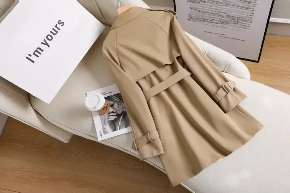Classic Elegance Belted Trench Coat – Timeless Beige